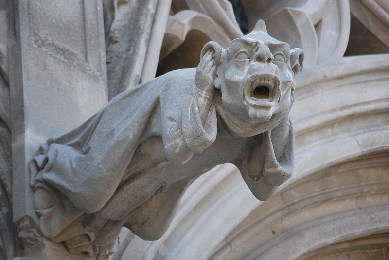 The gargoyles lurk upon their haunches,